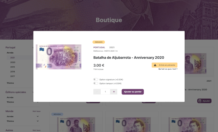- Une des particularités de ce projet se situe au niveau des préventes. En effet, il m'a été demandé de pouvoir laisser des produits encore non approvisionné, et ayant donc un stock à zéro ouverts à la vente.