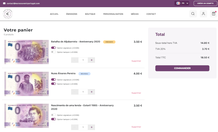 - Gestion d'options pour les produits (Signature, Tampon...).