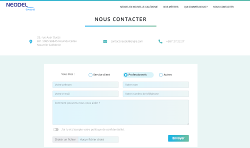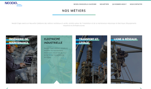 Site vitrine one-page présentant l'activité de Neodel, les métiers exercés, ainsi qu'une courte présentation et un formulaire de contact. Le site va être amené à évoluer rapidement pour intégrer un module de gestion des offres d'emplois et se décomposer en plusieurs page.